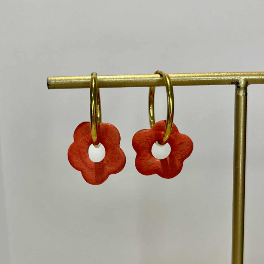 Boucles d’oreilles créole avec son pendentif fleur en pâte polymère.