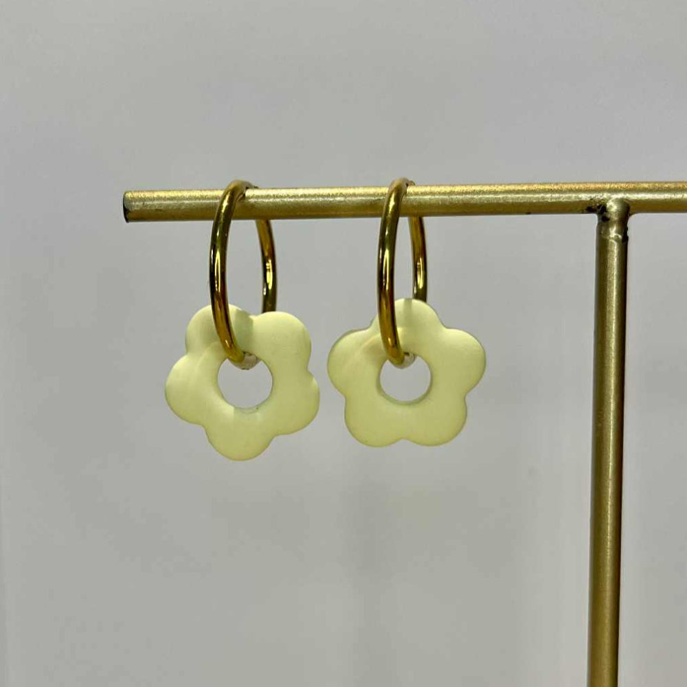 Boucles d’oreilles créole avec son pendentif fleur en pâte polymère.